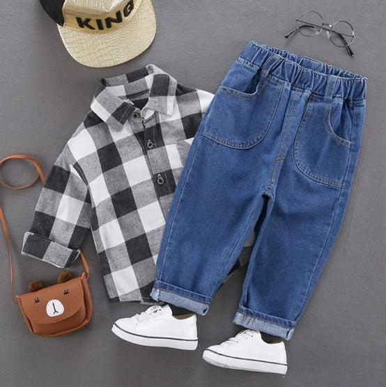امنح طفلك إطلالة شبابية أنيقة مع هذاالولادي العصري المكوَّن من بنطال جينز أنيق بتصميم كلاسيكي لا يَغيب عن الموضة. مزيج مثالي يجمع بين الأسلوب السبور واللمسة الأنيقة ليمنح طفلك مظهرًا راقيًا في كل مناسبة.