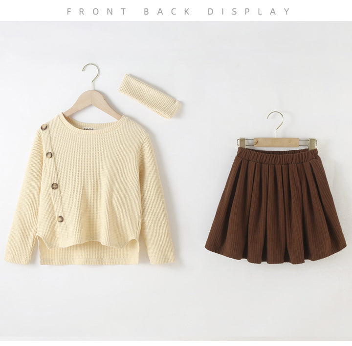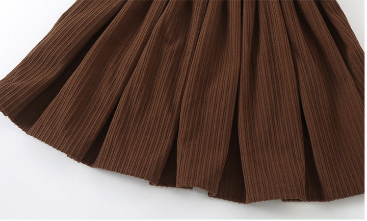 استقبلي فصل الشتاء بإطلالة دافئة وأنيقة مع هذا الطقم البناتي الشتوي الراقي المكوَّن من تنورة بنية أنيقة وبلوزة صوف ناعمة ودافئة. تصميم يجمع بين الأنوثة الكلاسيكية والراحة العصرية ليمنح طفلتك مظهرًا جذّابًا في الأيام الباردة.