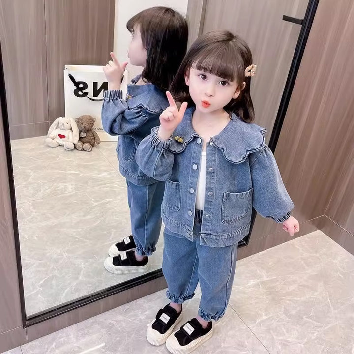 امنحي طفلتك إطلالة كاجوال مريحة وعصرية مع هذا الطقم البناتي الجينز الأزرق. تصميم عملي وأنيق يناسب اللعب والطلعات اليومية، مع خامة متينة وناعمة تحافظ على راحة طفلتك طوال اليوم.