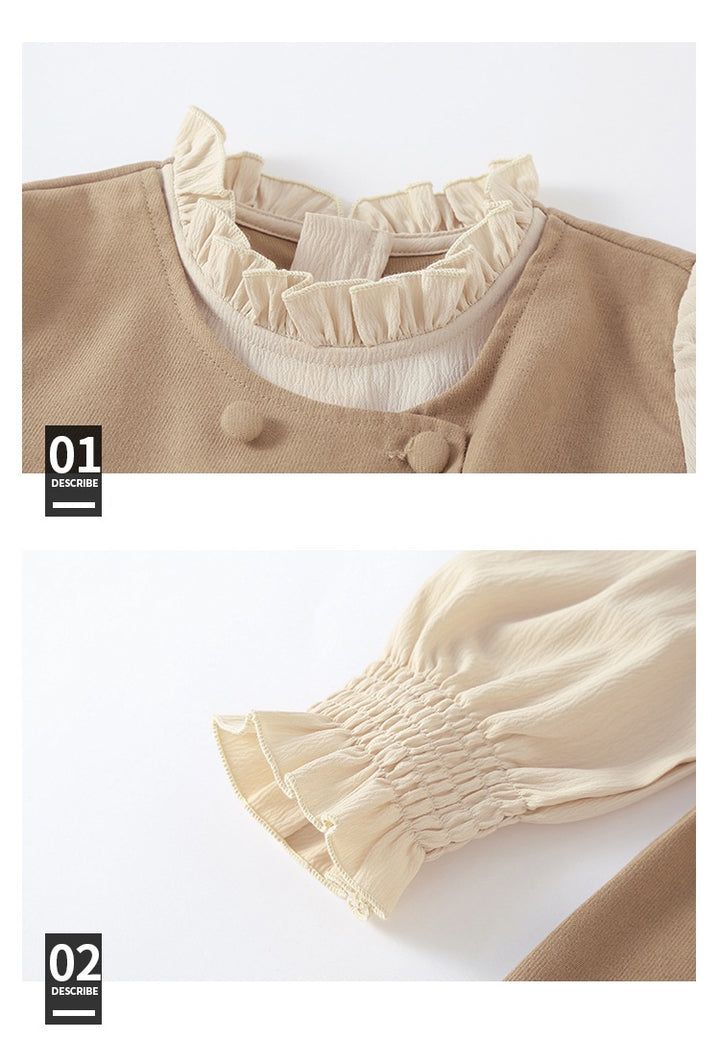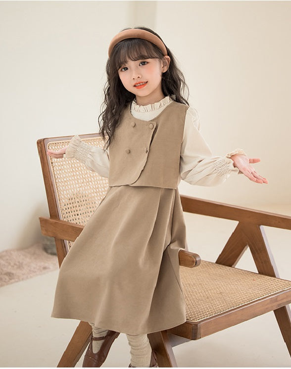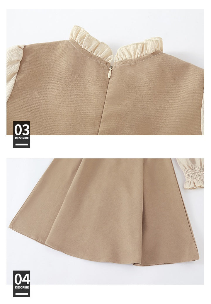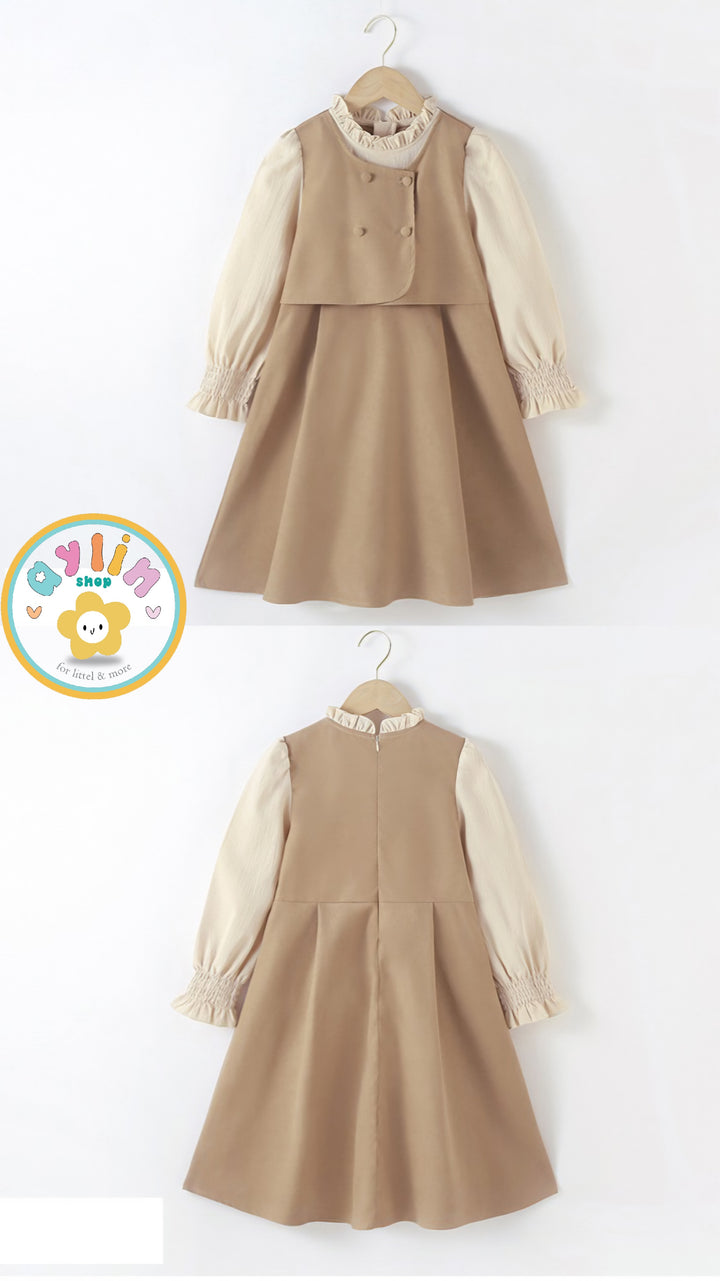 امنحي صغيرتك لمسة من الأناقة الباريسية مع هذا الطقم البناتي الراقي المصمم على الستايل الفرنسي الكلاسيكي، والمكوّن من تنورة أنيقة وقميص بلون بيج ناعم.