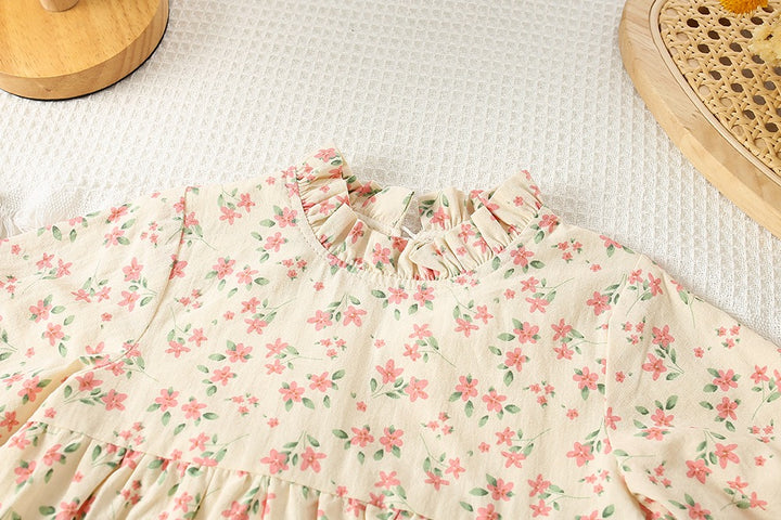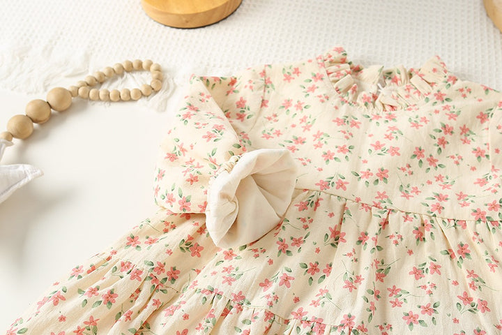 أضيفي لمسة من البراءة والجمال إلى خزانة صغيرتك مع هذا الفستان الطفولي المورد المصمم بعناية ليجمع بين الأناقة والراحة. يتميز الفستان بقماش ناعم وخفيف مثالي لأيام الصيف الدافئة، مزين بنقشات ورود ناعمة تضفي عليه طابعًا أنثويًا مميزًا.